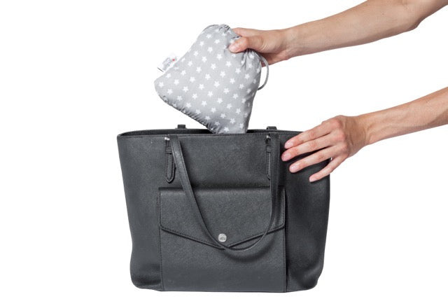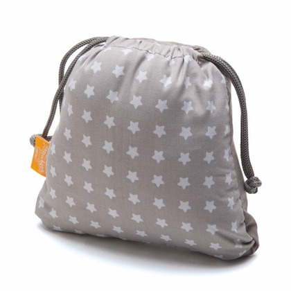 Dieser innovative Bezug lässt sich in **eine integrierte Tragetasche** zusammenfalten, die Teil des Produkts ist. Er ist so klein und leicht, dass Sie ihn jeden Tag mitnehmen können. Die ideale Lösung für Familien, die viel unterwegs sind, und für kleine Räume, in denen ein klassischer Stuhl im Weg ist.