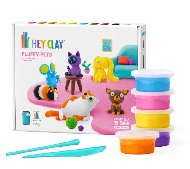 HEY CLAY Fluffy Pets Modelliermasse Set, Haustiere