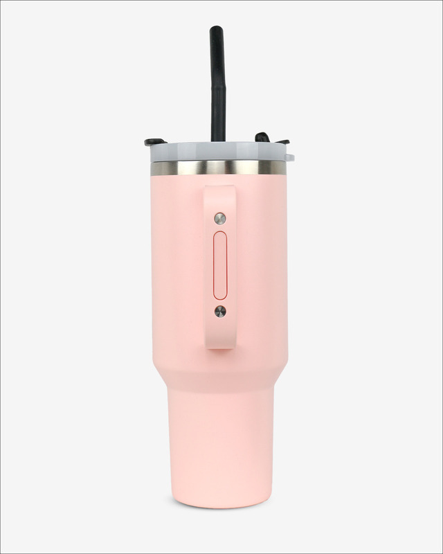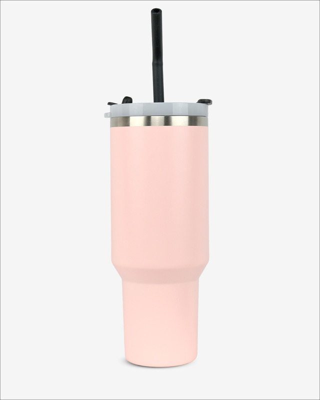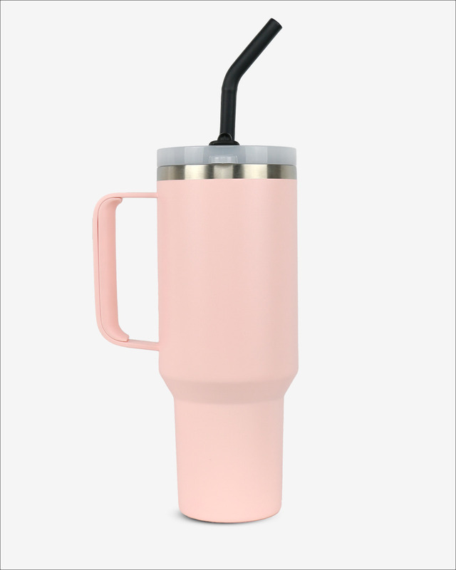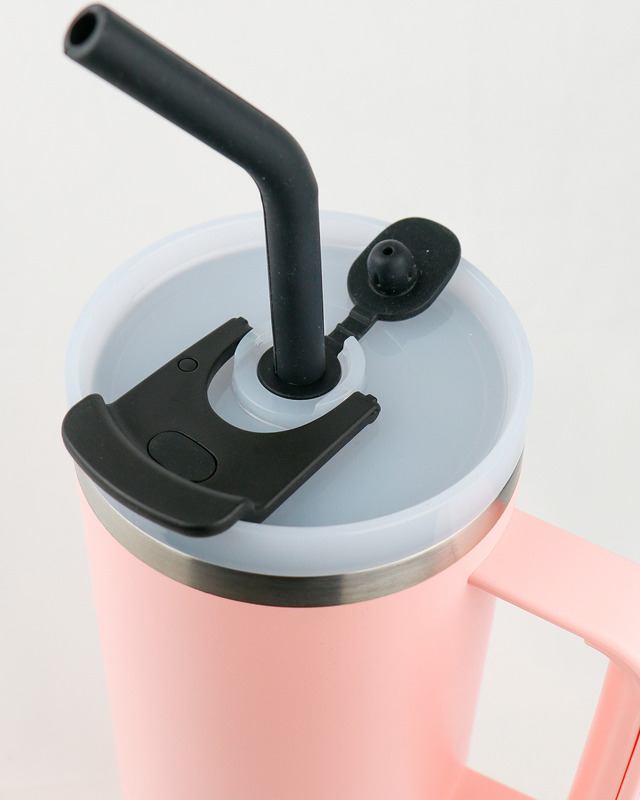 Runbott Latt Thermobecher mit Griff und Strohhalm – 1000 ml, Puderrosa