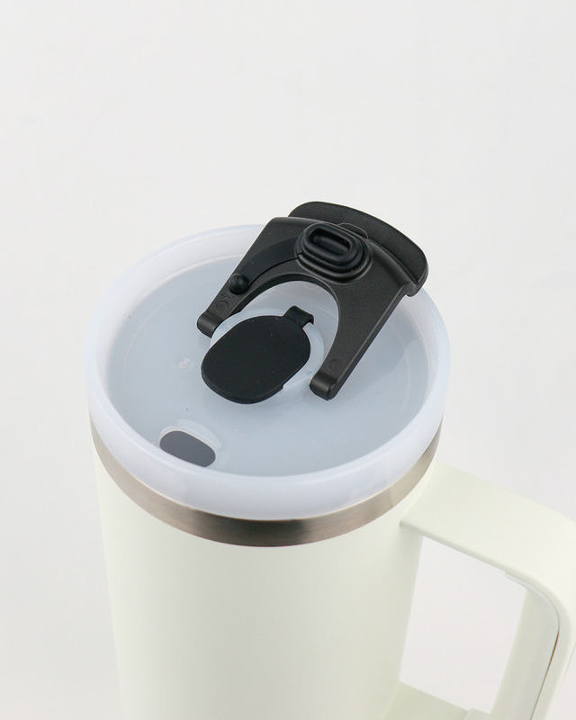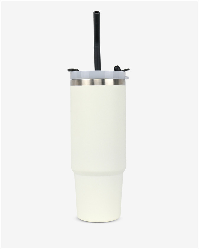 Runbott Latt Thermobecher mit Griff und Strohhalm – 800 ml, Cremefarben
